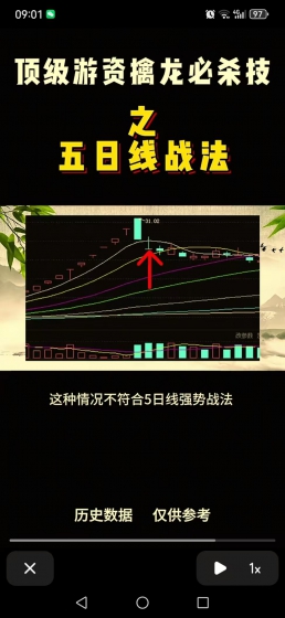 三、收市破五即卖法则。如果个股临近收盘调整跌破五日线,这种情况不符合五日线强势战法,及时止损小亏出局。